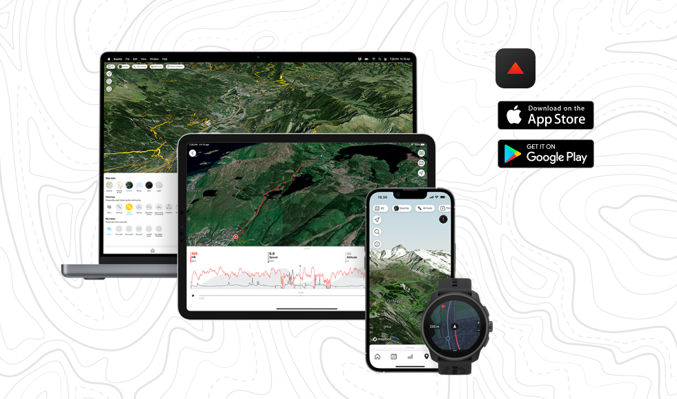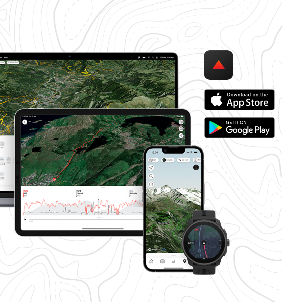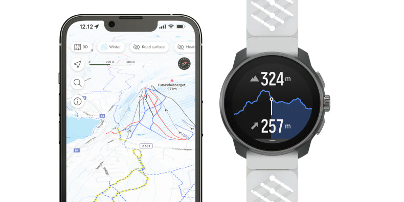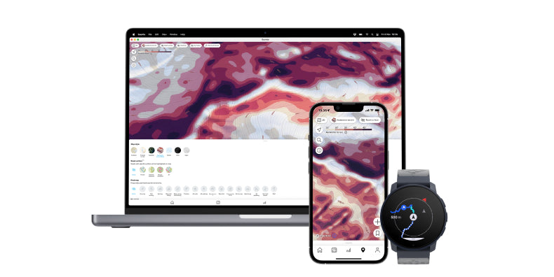 You can plan routes in the Suunto app, using different map layers like avalanche terrain maps and street surface details, and then easily sync the route to your watch for seamless navigation. This makes it simple to plan and track your journey.