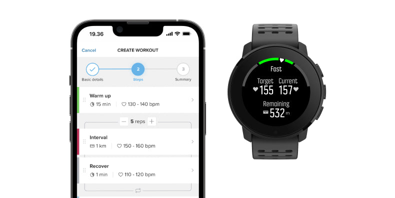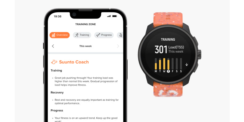 The Suunto Training Zone in Suunto app helps you in analysing the progress. With the workout planner you can plan your trainings to answer the insights Suunto coach offers you.