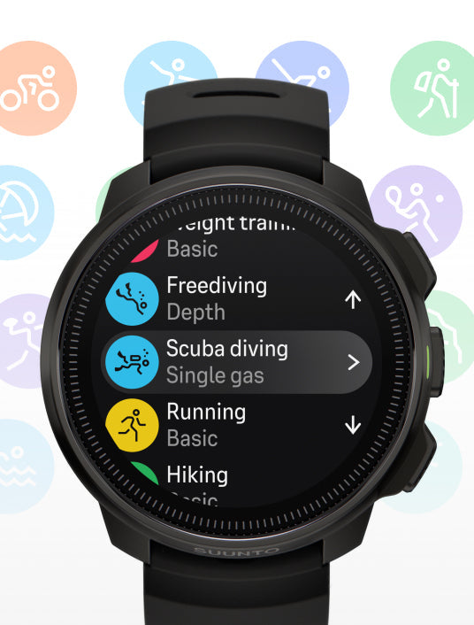 Suunto sports watches offer a wide range of sports modes (depending on model from 30 to over 90), covering activities from common workouts like running and cycling to niche and extreme sports.