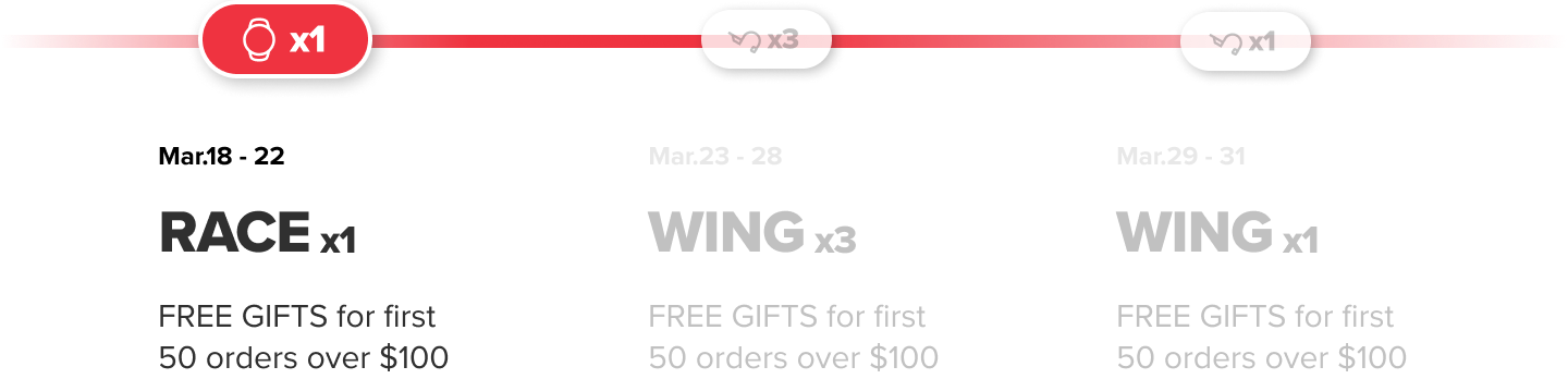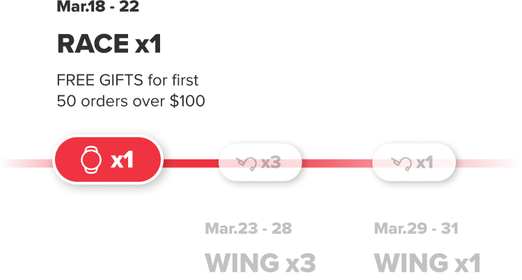 Be one of the first 50 customers in each promotional phase with a qualifying order of $100 or more and receive an exclusive extra gift. Your bonus may include Suunto Race, Wing, Lightweight Vest, Hoodie, Merino Wool Knit Hat or premium styled straps—while supplies last.