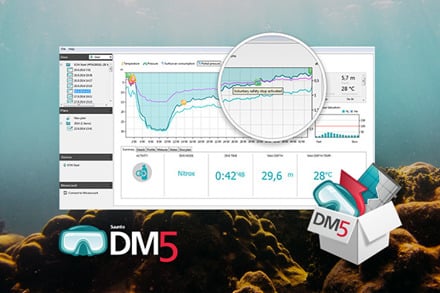The Suunto DM5 allows you to download your dive logs for advanced analysis and create dive plans. Transfer dive logs from your compatible Suunto dive computer, upload dive plans, and customize your dive computer.
