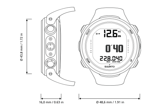 • Detailed graphical logs and dive data on your PC/Mac using Suunto DM5 software