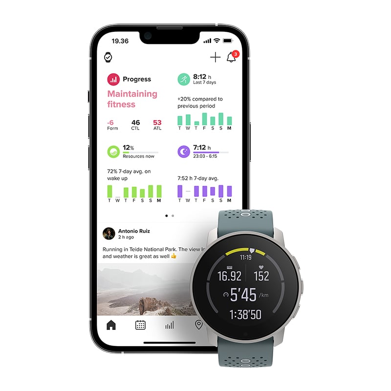 Connect your Suunto watch with your favorite tools from our 200+ partners to analyze your training, find new routes, get coaching, or create 3D videos of your adventures – and share to your favorite community. When in need for that extra boost of energy, just select your favorite music, control it with your watch and start the workout.