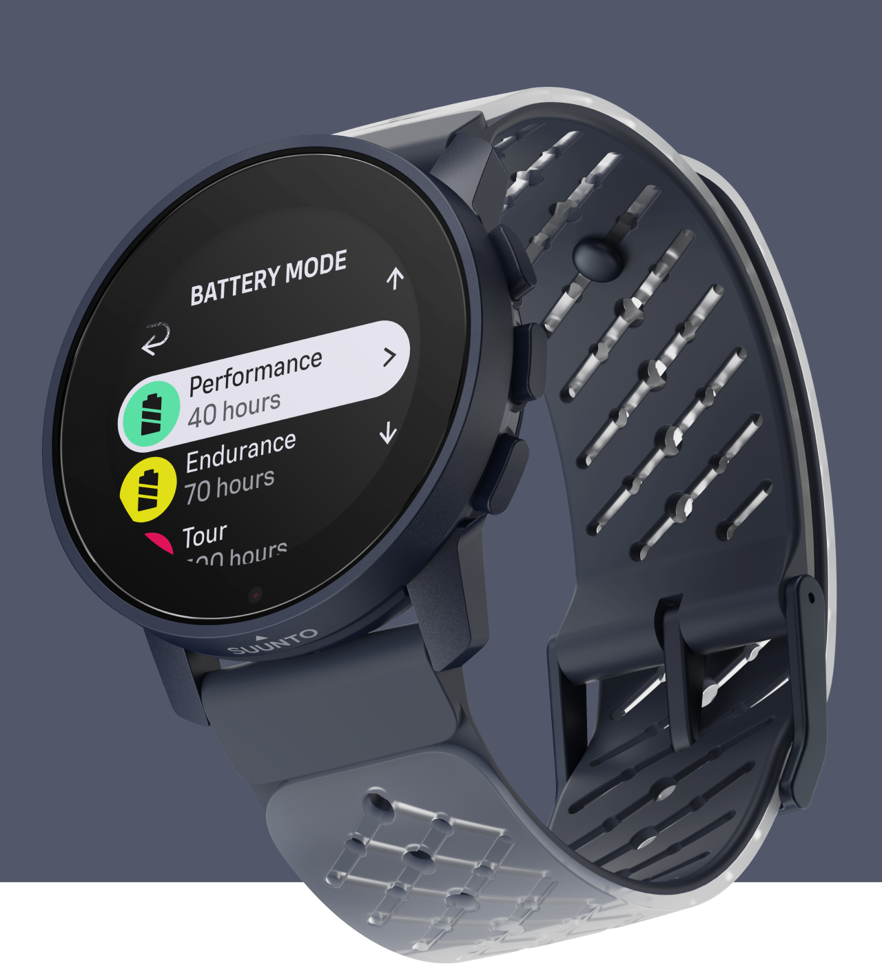 With Suunto 9 Peak Pro, you can push your limits without worrying about running out of power. Performance mode is activated by default at the start of exercise. If you need to keep going longer, you can change the mode in the watch settings.