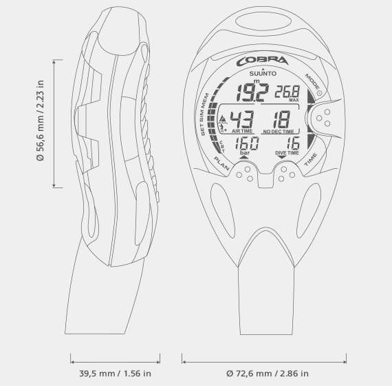 What's in the box?Suunto Cobra, high pressure hose included; dive manuals on DVD, Cobra Quick Guide and dive legal leaflet with warranty information