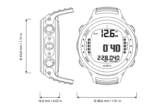- Detailed graphical logs and dive data on your PC/Mac using Suunto DM5 software