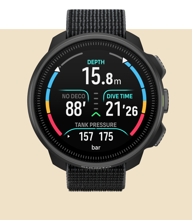 Its durable, pressure-resistant build and bright AMOLED display ensure clear visibility and confidence on each dive. The new elastic textile strap offers superior comfort and flexibility, adapting to every exposure suit and diving condition.