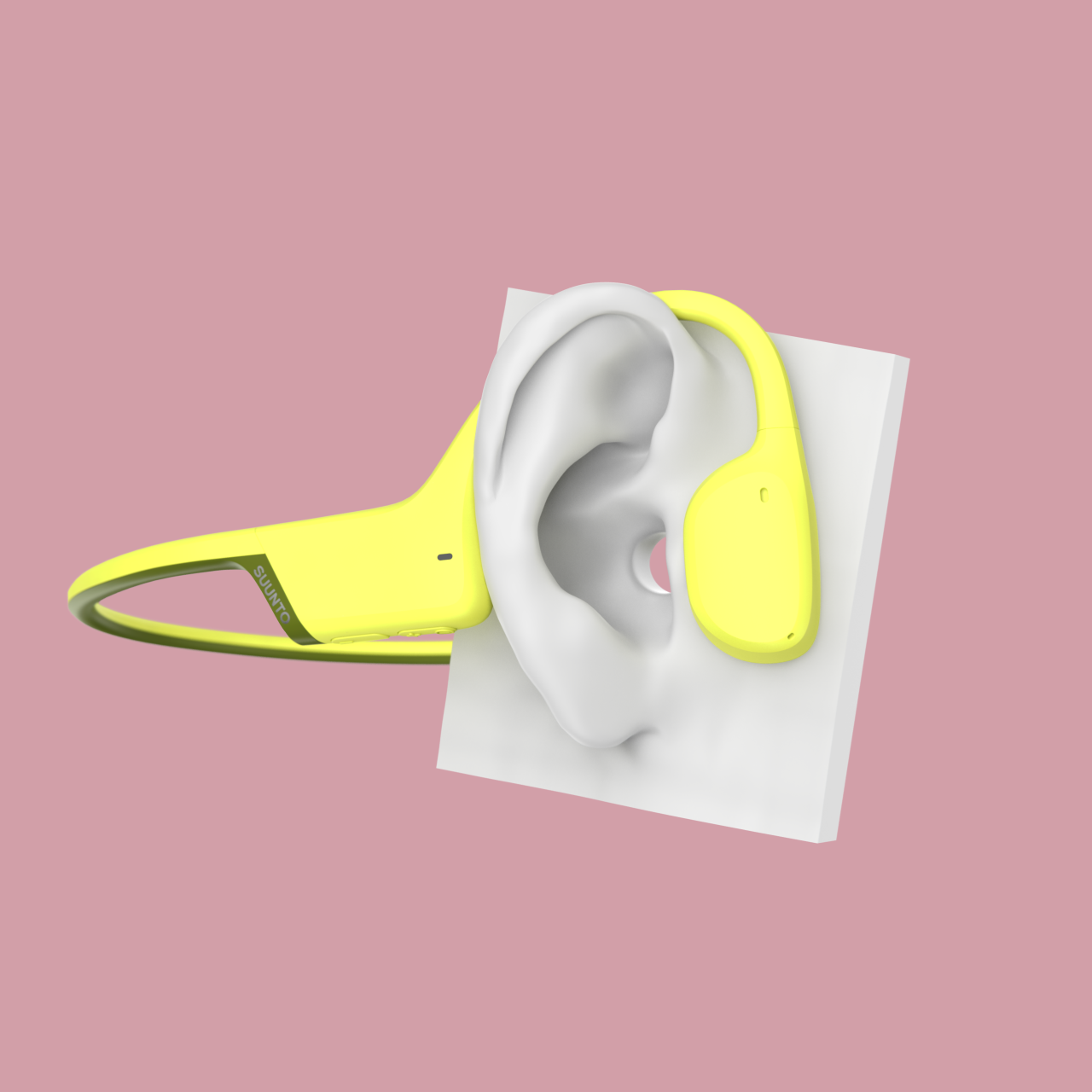 Open-ear technology allows you to listen to music and at the same time still hear your surroundings. Instead of traditional in-ear headphones, Suunto Sonic sits on your jawbone leaving your ear canal open to stay aware of the nature or traffic around you.
