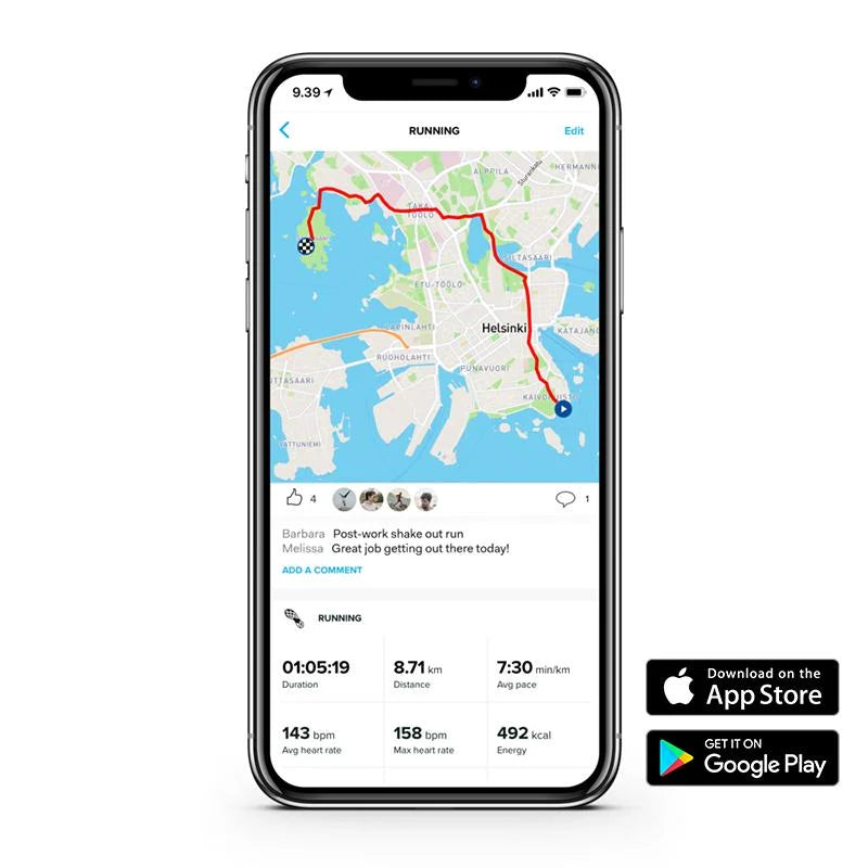 Compatible with online sports communitiesStrava, TrainingPeaks, MapMyFitness and others (available in Suunto app)