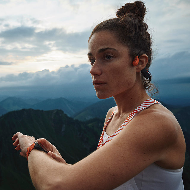 Premium bone-conduction headphones with powerbank. Designed for safe adventuring - every day, in any weather.