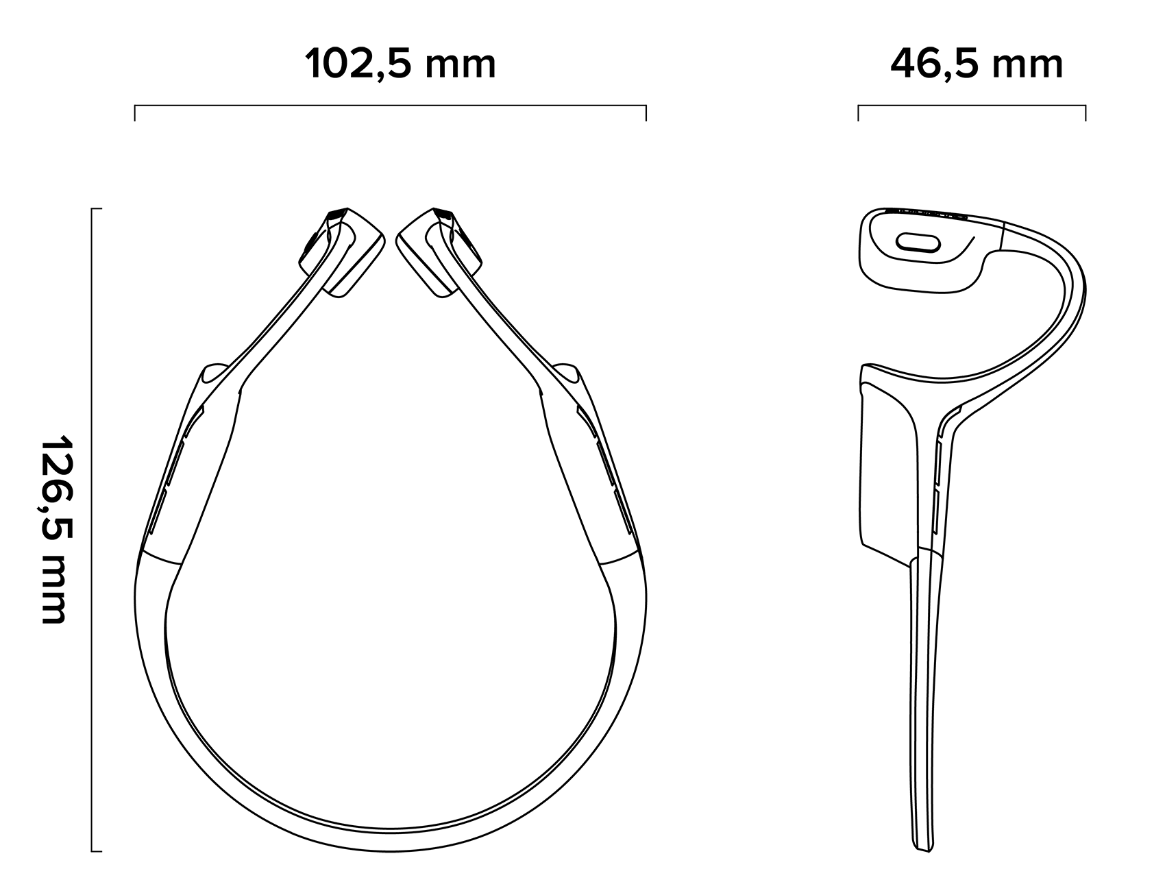 Open-ear technology allows you to listen to music and at the same time still hear your surroundings. Instead of traditional in-ear headphones, Suunto Wing sits on your jawbone leaving your ear canal open to stay aware of the nature or traffic around you.